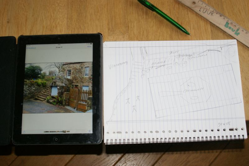 Eerst alles op papier gezet, getekend op schaal zodat ik precies weet wat ik aan ruimte heb zodat straks alles perfect in elkaar past.