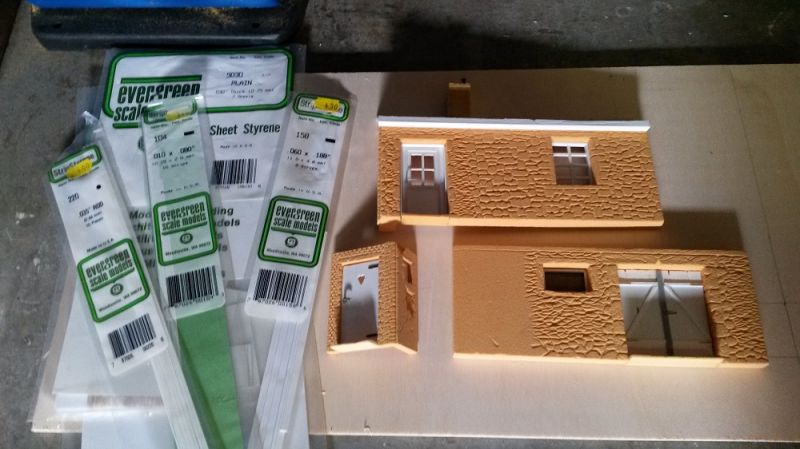 Om de Balsa-Foam delen verder af te werken gebruik ik veel Evergreen strip en plaat. Dit materiaal laat zich ook goed bewerken en gebruik ik om b.v. deuren, ramen, enz van te maken.