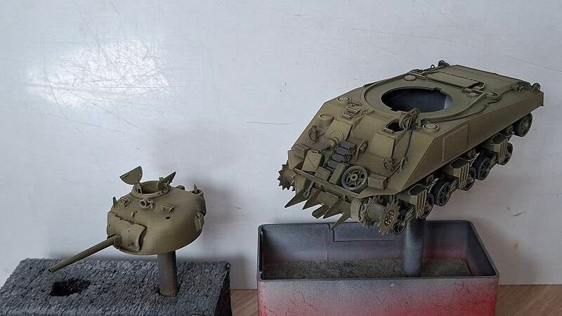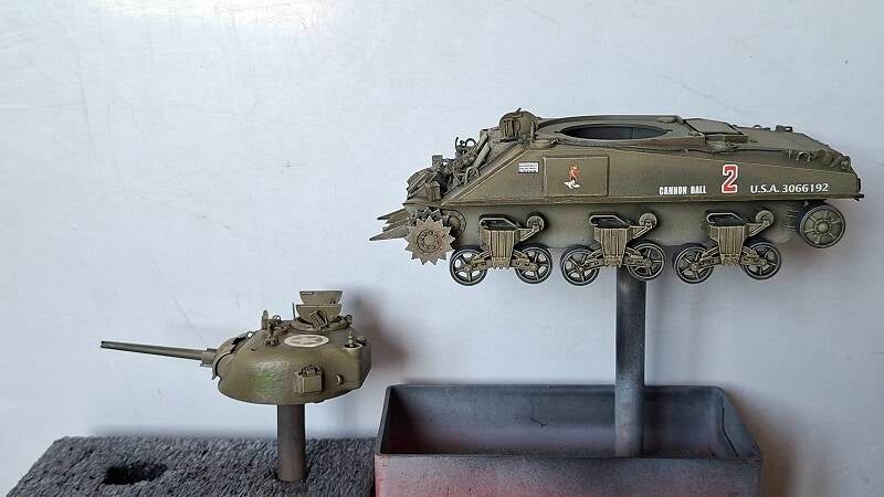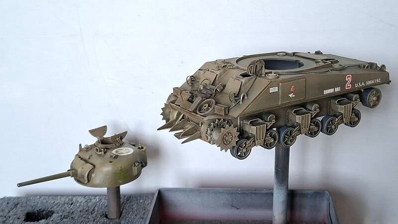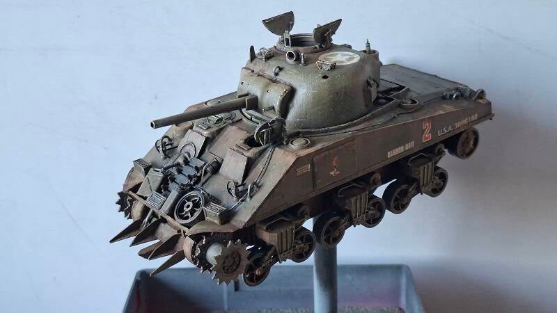 De swimmwagen zie je hier al in aanbouw, de Sherman is een model wat ik uit de vitrine kast heb gepakt.