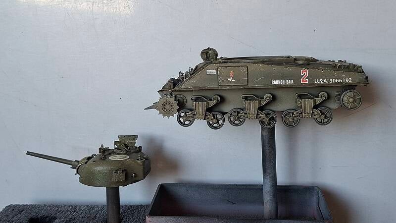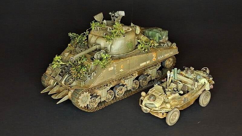 de M4 Sherman van Dragon en de swimmwagen van Tamiya.