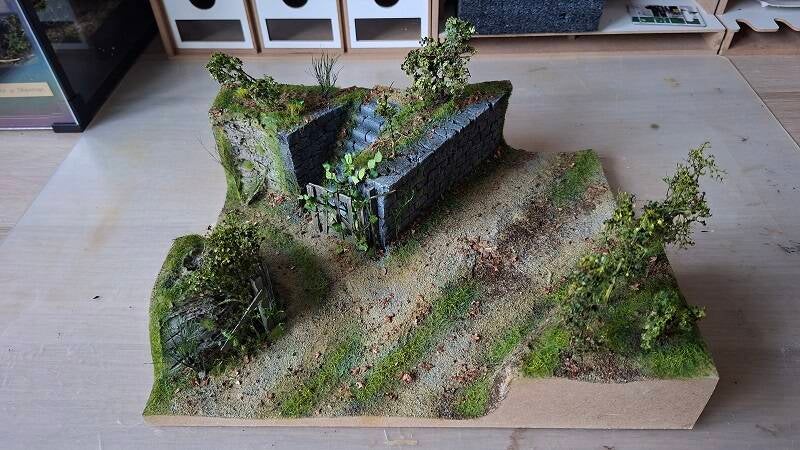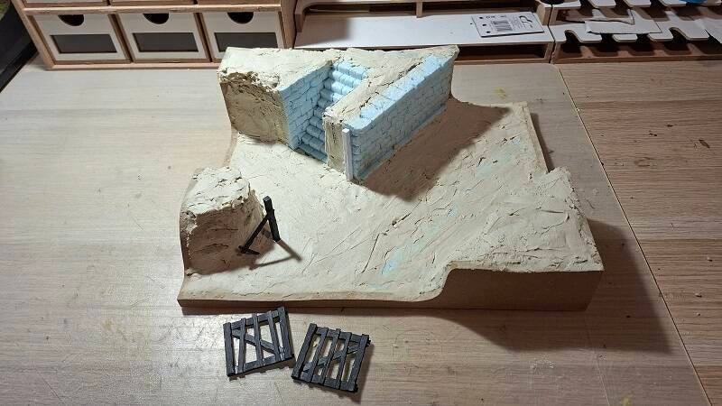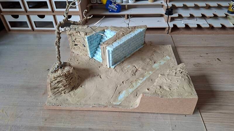 Het diorama is in aanbouw, de basis is gemaakt van mdf en verder opgebouwd met styrofoam en schuim om het hoogte