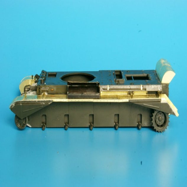 Ik ben begonnen met het onderstel te bouwen. Hierna de fenders van de bovenzijde verwijderd omdat dit word vervangen door de PE set van Aber.