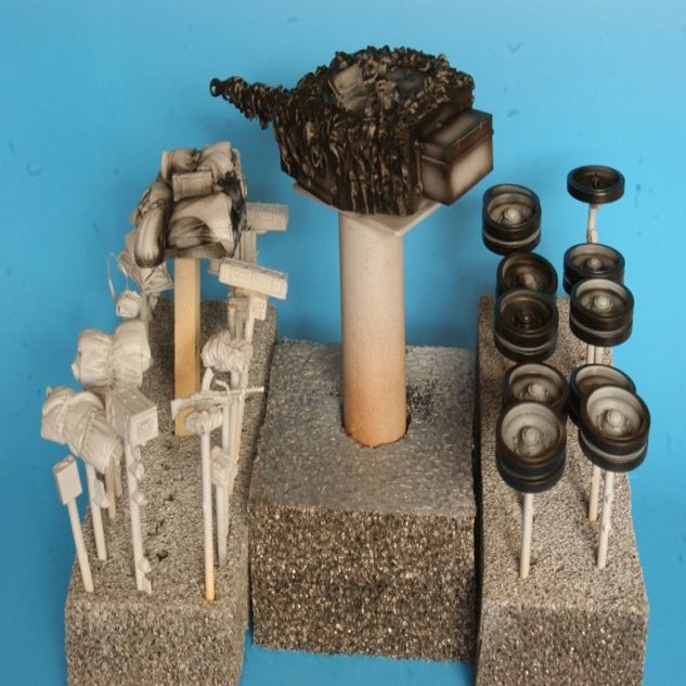 De stowage is inmiddels ook geplaatst op stokjes. Zo kan ik ze goed vast houden om het te verven.