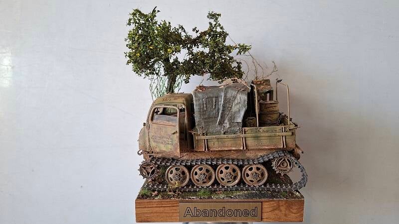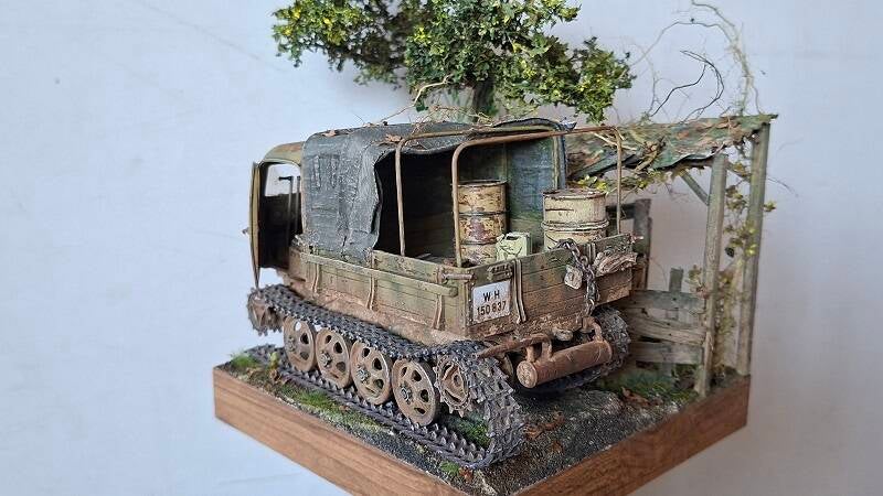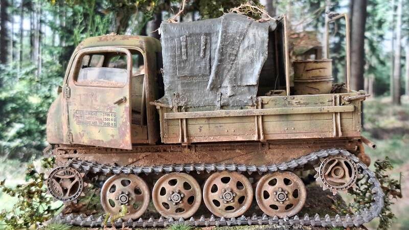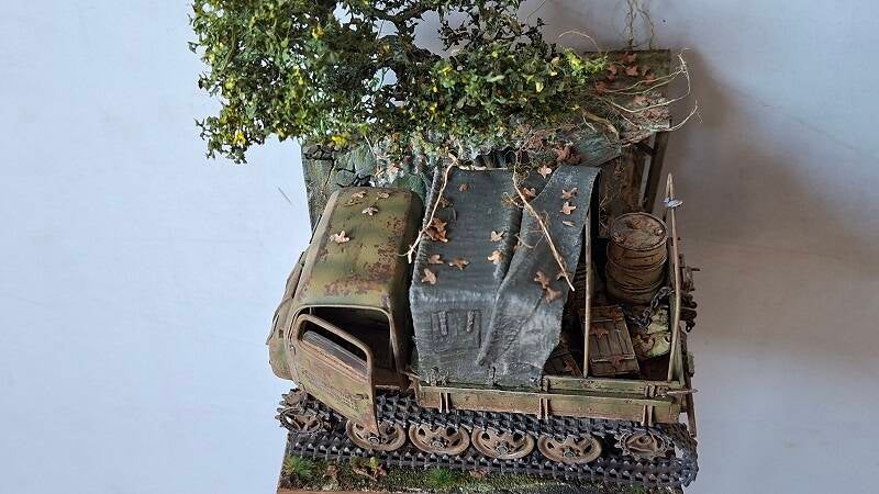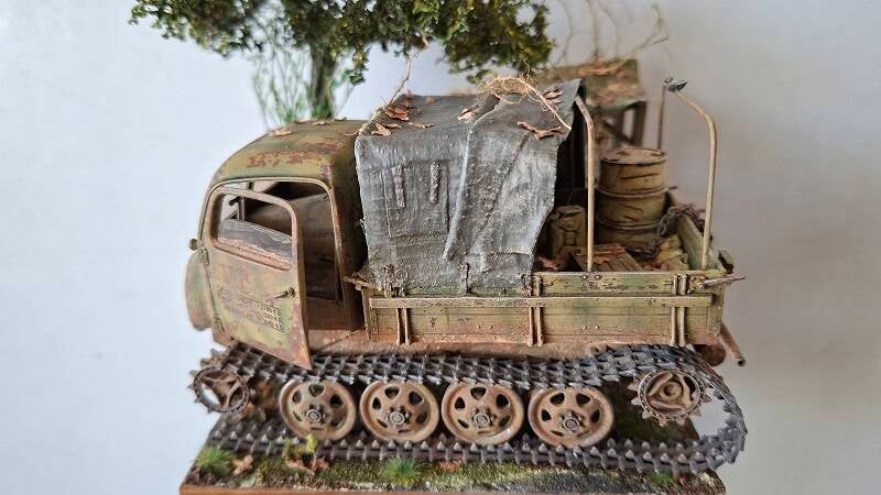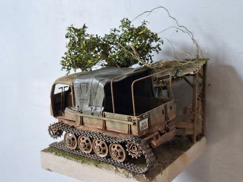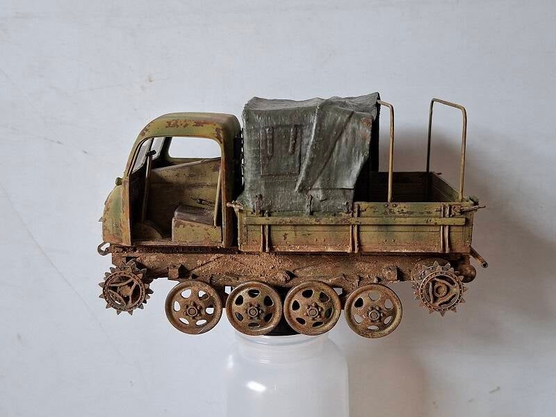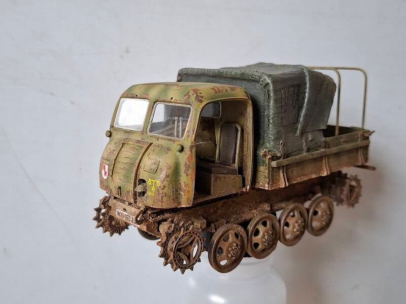 De basis staat, nu het geheel verder verweren en de onderkant met pigment poeders de modder en vuil aanbrengen.