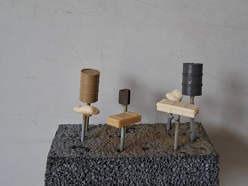De oliedrum ook op deze manier gedaan alleen met een basiskleur zand.